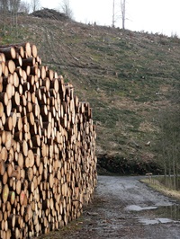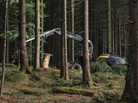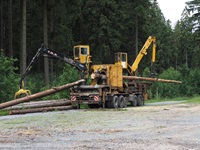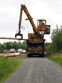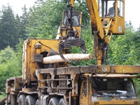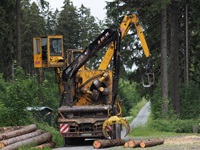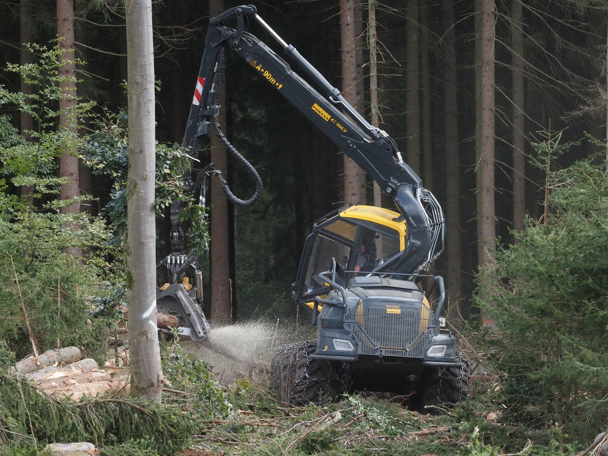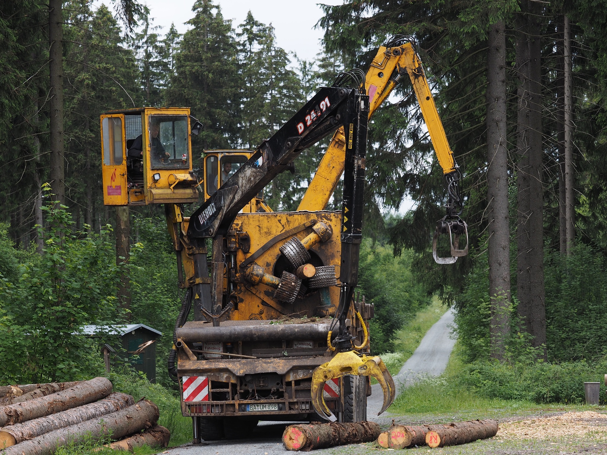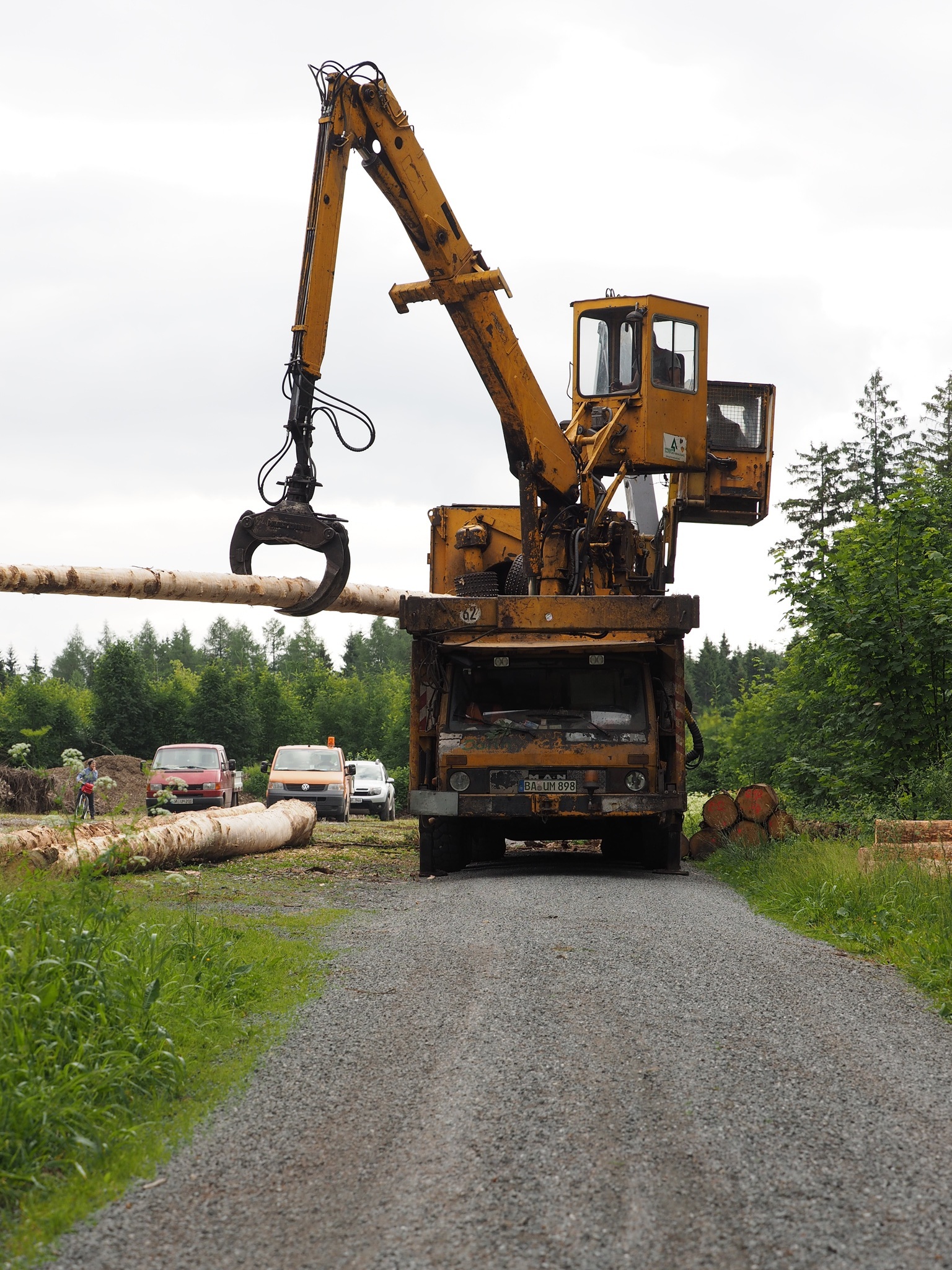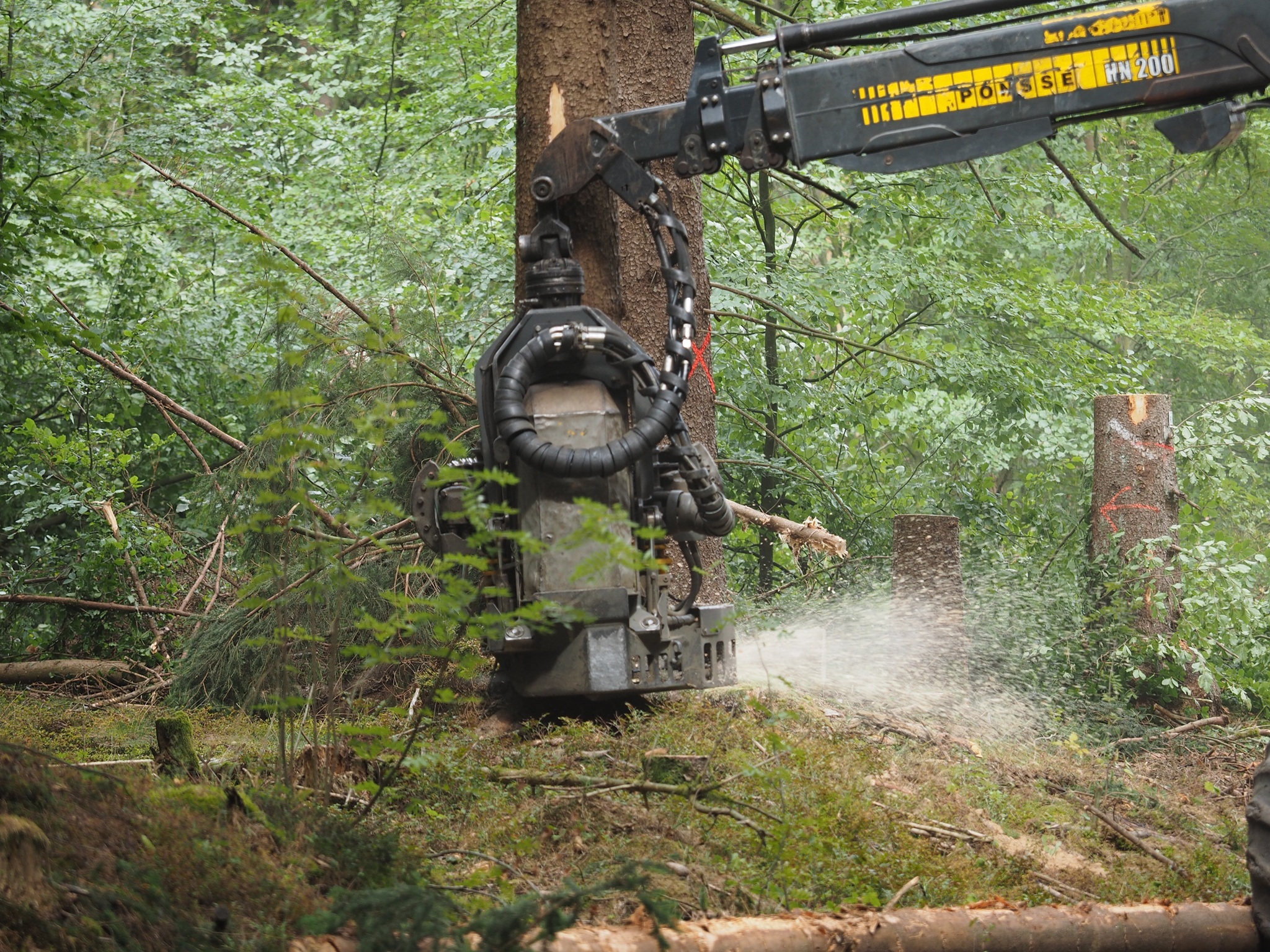Baumentrindungsmaschine mit der die Bäume entrindet werden.